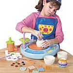 Deluxe Pottery Wheel lets kids and adults experience the fun of working with their hands while creating professional-looking pottery. Electric wheel has a powerful motor and foot pedal to control speed as they mold the clay into a one-of-a-kind masterpiece. The best part is, it air-dries overnight-no baking required! Kit contains 2 lbs. of clay, easy-to-use shaping tools, colorful paints, mosaics,